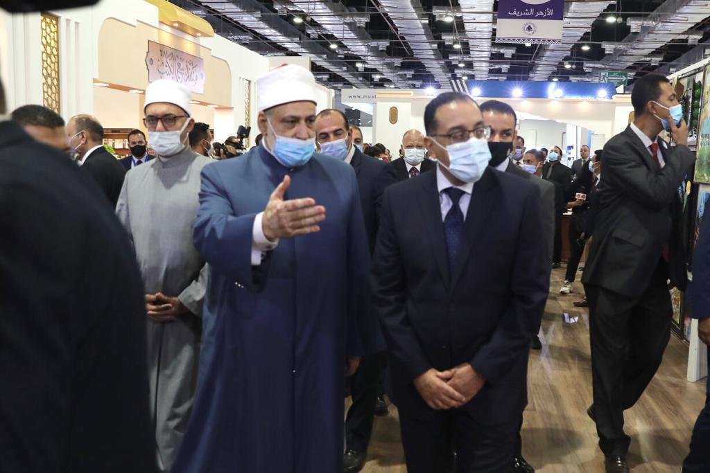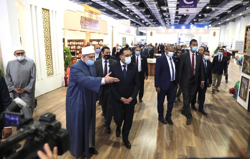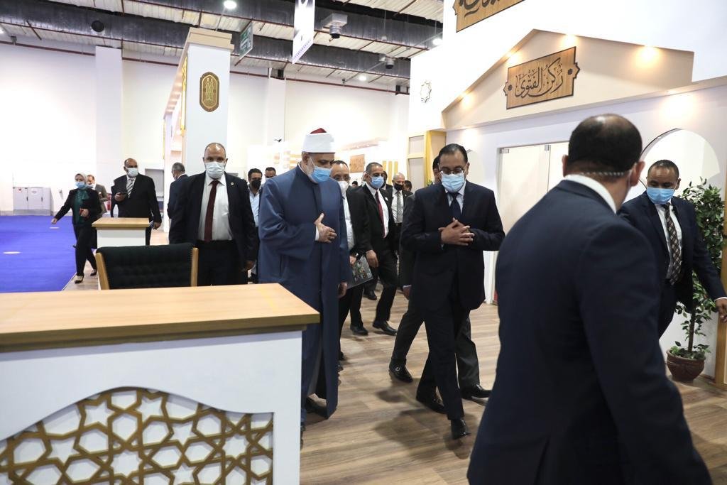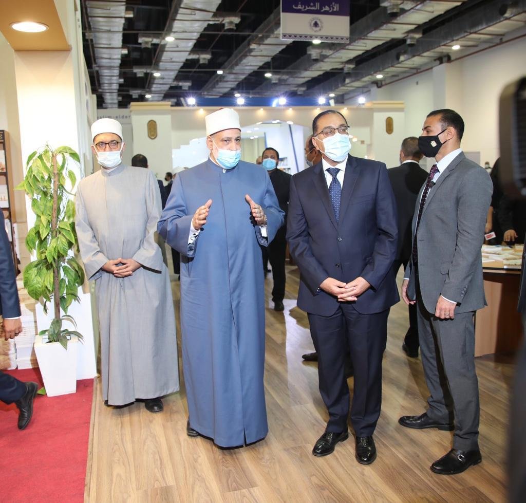 واصطحب وكيل الأزهر، والأمين العام لمجمع البحوث الإسلامية، رئيس الوزراء في جولة تفقدية لأركان الجناح المختلفة ومنها ركن الكتب، وركن الفتوى، وركن الخط العربي، ومقر الندوات الافتراضية.