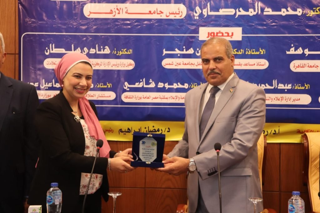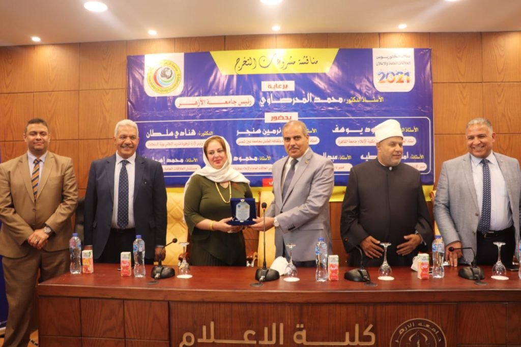 أشاد رئيس الجامعة بجهود كلية الإعلام برئاسة الدكتور غانم السعيد عميد الكلية، والدكتور رضا أمين وكيل الكلية، والتي ولدت من رحم كلية اللغة العربية جامعة الأزهر بالقاهرة، وقد ولدت قوية.