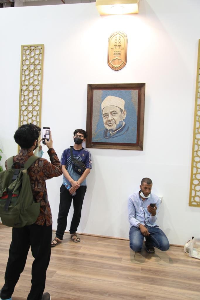 وكانت الصورة المصنوعة من الخشب لفضيلة الإمام الأكبر أ.د أحمد الطيب شيخ الأزهر -طوال فترة المعرض- برواق الجناح؛ الأكثر جذبا للجمهور، لأخذ لقطات تذكارية معها، كما شهدت إصدارات جناح الأزهر بمعرض القاهرة الدولى للكتاب لعام ٢٠٢١ إقبالا كبيرا من جانب رواد المعرض، الذين اصطفوا بمركز البيع للحصول على أكبر عدد من تلك الإصدارات، التى تباين تصنيفها ما بين قضايا فكرية، ومعالجات علمية للمشكلات الأسرية والاجتماعية، وأخرى ترسخ لمفهوم المواطنة وتدعم ثقافة العيش المشترك وقبول الآخر؛ فضلًا عن الإصدارات التاريخية المهمة التى تربط بين الماضى والحاضر برؤية واقعية تأخذ فى اعتبارها التغيرات المعاصرة، كما أتاحت مكتبة الأزهر فى ركنها الخاص بالجناح، فرصة للاطلاع على مخطوطات تاريخية.