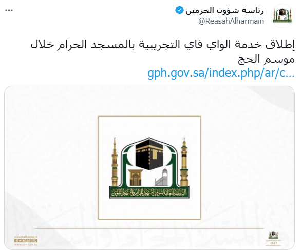 أعلنت وكالة المشاريع والدراسات الهندسية بالرئاسة العامة لشؤون المسجد الحرام والمسجد النبوى بالتعاون مع شركة الاتصالات المتنقلة “زين” السعودية، إطلاق خدمة الـ(واى فاى) التجريبية فى عدد من المواقع داخل المسجد الحرام وساحاته خلال موسم حج هذا العام، وفقًا لوكالة الأنباء السعودية.