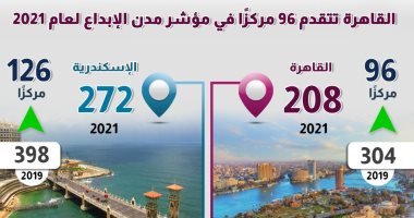 نشر مركز المعلومات ودعم اتخاذ القرار بمجلس الوزراء إنفوجراف بعنوان “القاهرة تتقدم 96 مركزًا في مؤشر مدن الإبداع لعام 2021″؛ حيث جاءت القاهرة في المركز 208 في مؤشر مدن الإبداع عام 2021 من بين 500 مدينة حول العالم، واحتلت الإسكندرية المركز 272 في المؤشر نفسه، في حين جاءت طوكيو عاصمة اليابان في صدارة الترتيب، يليها كلٌّ من بوسطن ونيويورك الأمريكيتين، وذلك طبقًا لمؤشر مدن الإبداع الصادر عن وكالة الابتكار توثينك ناو (2THINKNOW)، والذي أصبح أعلى مقياس لتصنيف المدن من حيث الابتكار في مختلف المجالات.