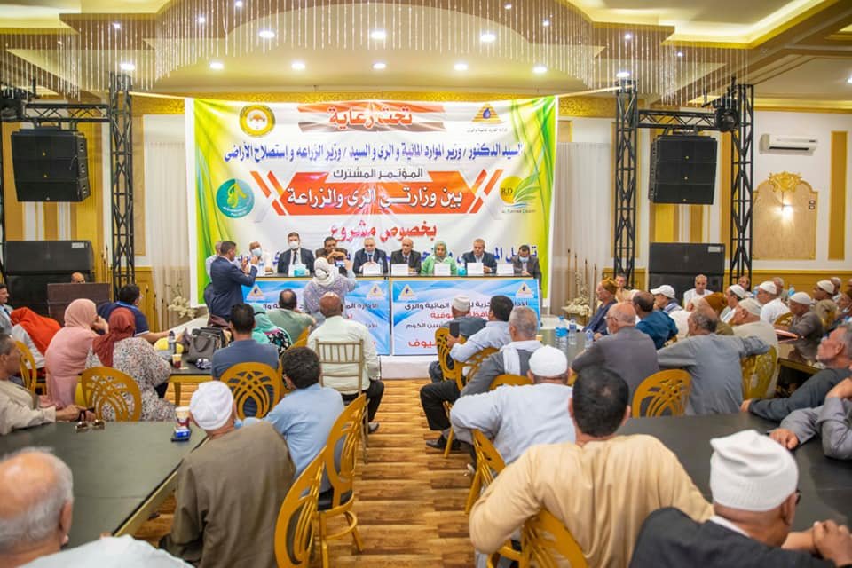 وخلال المؤتمر، قام السادة ممثلى وزارتي الري والزراعة بعرض السياسة المائية والمشروعات القومية التي تهدف لحسن استغلال الموارد المائية والحفاظ عليها وتحسين الوضع الاقتصادي والاجتماعى لكافة المزارعين ، كما قامت الإدارة المركزية للتوعية والإرشاد المائى بعرض بعض المواد الاعلامية الخاصة بالممارسات المميزة والتجارب الرائدة لعدد من المزارعين الذين حولوا الري بأراضيهم لنظم الري الحديث وما نتج عن ذلك من ترشيد في استخدام المياه وزيادة الانتاجية وتوفير تكاليف الاسمدة والعمالة والطاقة ، وقامت الادارة المركزية للتوجيه المائي بعرض الملامح الرئيسية لبرنامج وخطة العمل للبدء الفوري في تفعيل القرار الوزاري المشترك وتشجيع المزارعين على تنفيذ منظومة الرى الحديث وتأهيل المساقي وذلك من خلال تفعيل دور الجمعيات الزراعية وروابط مستخدمي المياه.