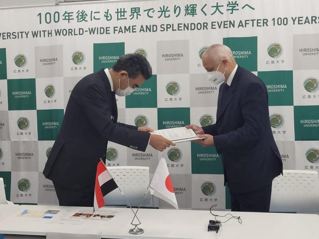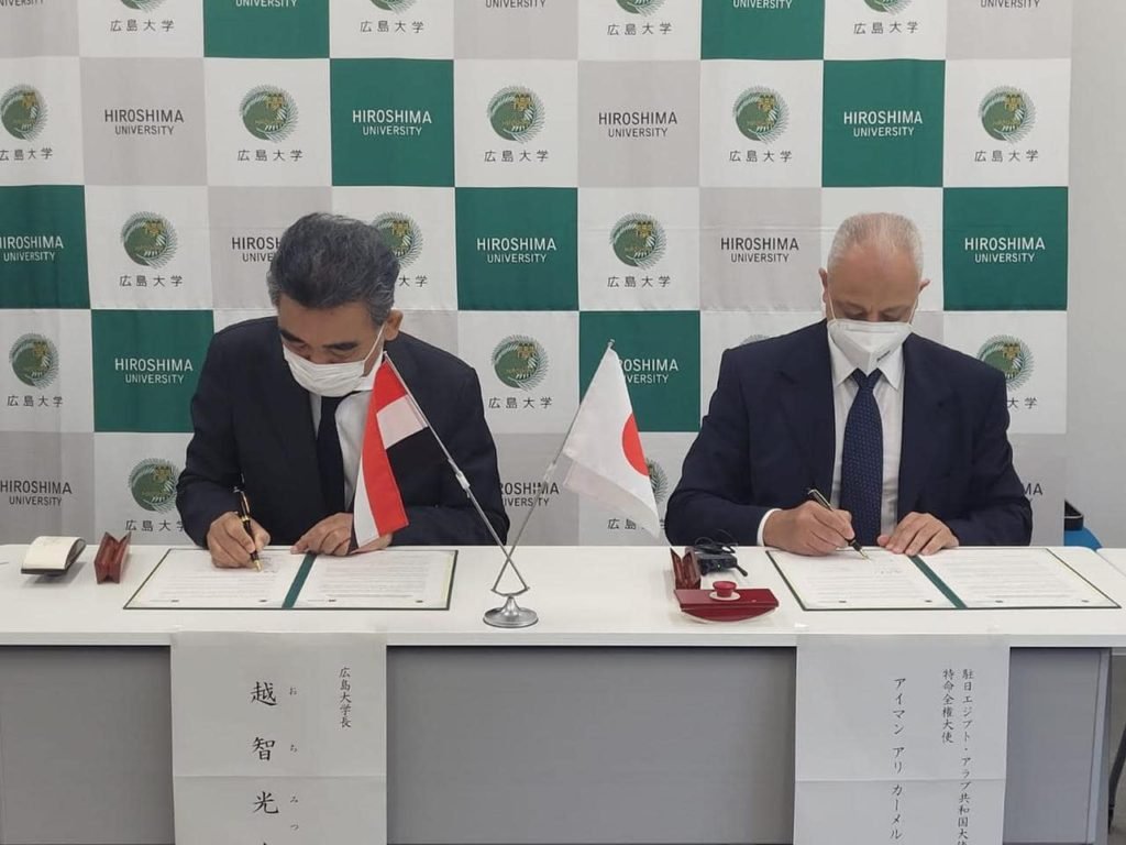 شهد سفير مصر في اليابان أيمن كامل، خلال زيارته إلى مدينة (هيروشيما)، التوقيع على مذكرة تفاهم خاصة بإنشاء مركز السلام في جامعة الجلالة بالتعاون مع جامعة هيروشيما اليابانية.