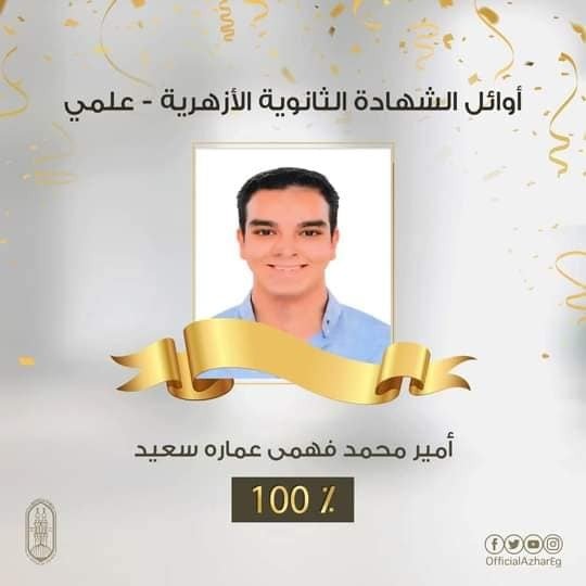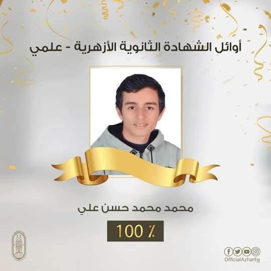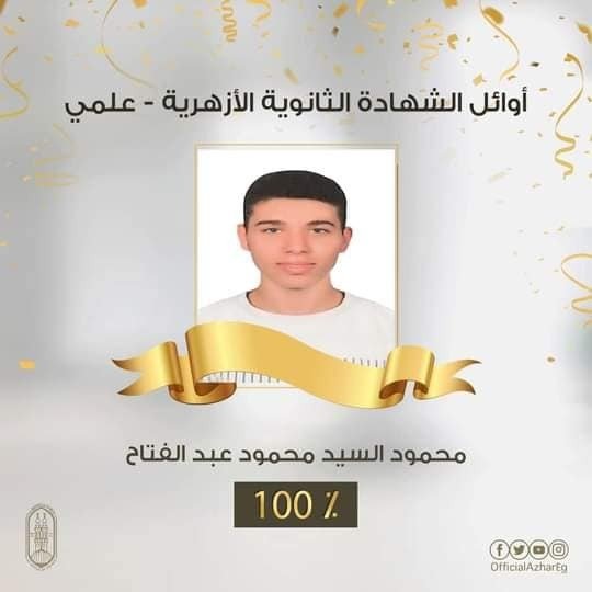 وحصل الطلاب: أحمد محمد جمال سليمان (معهد ميت غمر، محافظة الدقهلية)، وأمير محمد فهمي عمارة (معهد دكتور طلعت السيد النموذجي، محافظة القاهرة)، ومحمد تامر المرزوقي حسين (معهد طلخا، محافظة الدقهلية)، ومحمد محمد حسن علي (معهد الحج محمد عبد الوهاب النموذجي، محافظة الشرقية)، ومحمود السيد محمود عبد الفتاح (معهد انشاص الرمل، محافظة الشرقية) على المركز الأول على القسم العلمي بنسبة ١٠٠٪.