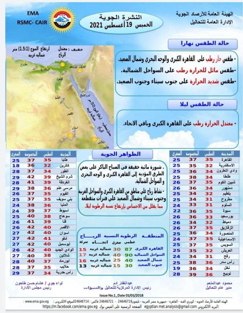 أما عن درجات الحرارة فجاءت كالآتي: