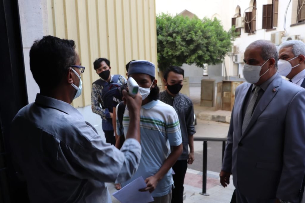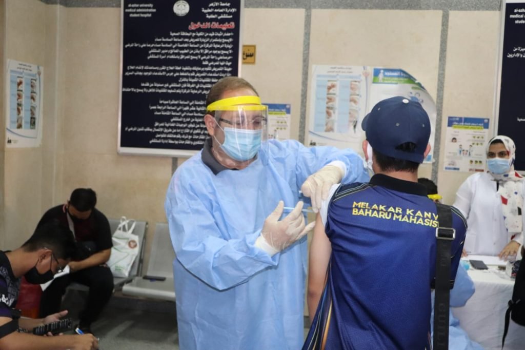وناشد رئيس الجامعة الطلاب والطالبات بسرعة التسجيل عبر موقع وزارة الصحة لتلقي لقاح فيروس كورونا، وكان في استقبال رئيس الجامعة والنواب الدكتور أسامة عبد الحليم، مدير مستشفى الطلبة.