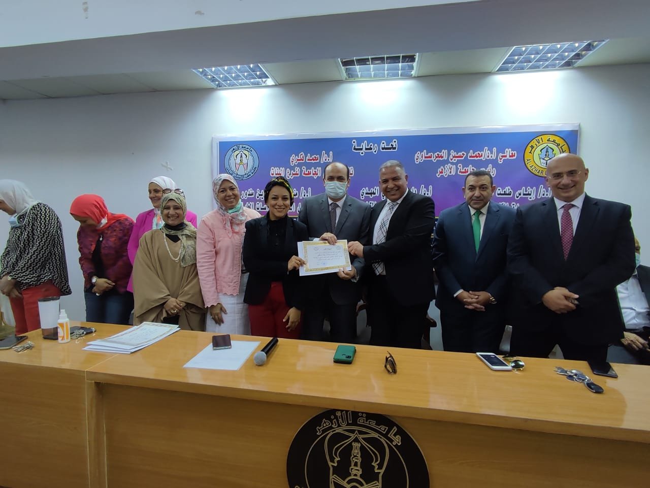 بناء على دعوة كريمة من الدكتورة إيناس طلعت، عميدة كلية طب الأسنان بنات جامعة الأزهر بالقاهرة؛ قام الدكتور محمد فكري خضر، نائب رئيس الجامعة لفرع البنات، نائب رئيس المؤتمر، بتكريم أعضاء هيئة التدريس بكلية طب الأسنان بنات جامعة الأزهر بالقاهرة بعد أدائهن المشرف في المؤتمر الدولي إيجي هيلث للعام 2021 في نسخته الثالثة، والذي عقد برعاية رئيس مجلس الوزراء، تحت عنوان: “نشر المعرفة وتبادل الخبرات” وبالتعاون مع إدارة الخدمات الطبية بالقوات المسلحة.