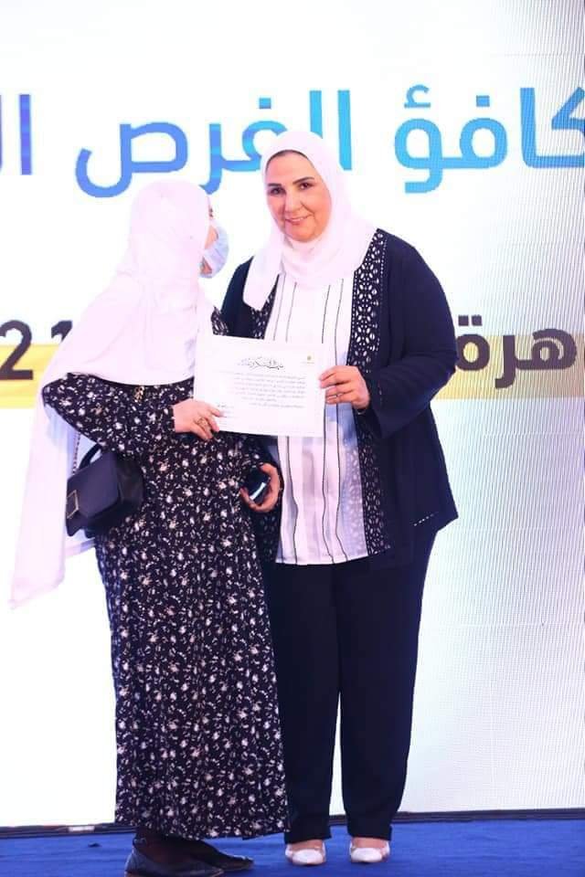 وحصل طلاب جامعة الأزهر على أجهزة كمبيوتر، بالإضافة إلى شهادات تقدير قامت بتسليمها لهم وزيرة التضامن الاجتماعي.