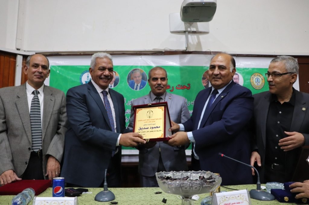 كان في استقبال رئيس الجامعة ونائبه الدكتور لطفي دياب، عميد الكلية، والدكتور مصطفى الشافعي، وكيل الكلية لشئون التعليم والطلاب، والدكتور عبد الناصر المغازي، وكيل الكلية للدراسات العليا والبحوث، ولفيف من قيادات الكلية، ورؤساء الأقسام، وأعضاء هيئة التدريس والهيئة المعاونة.