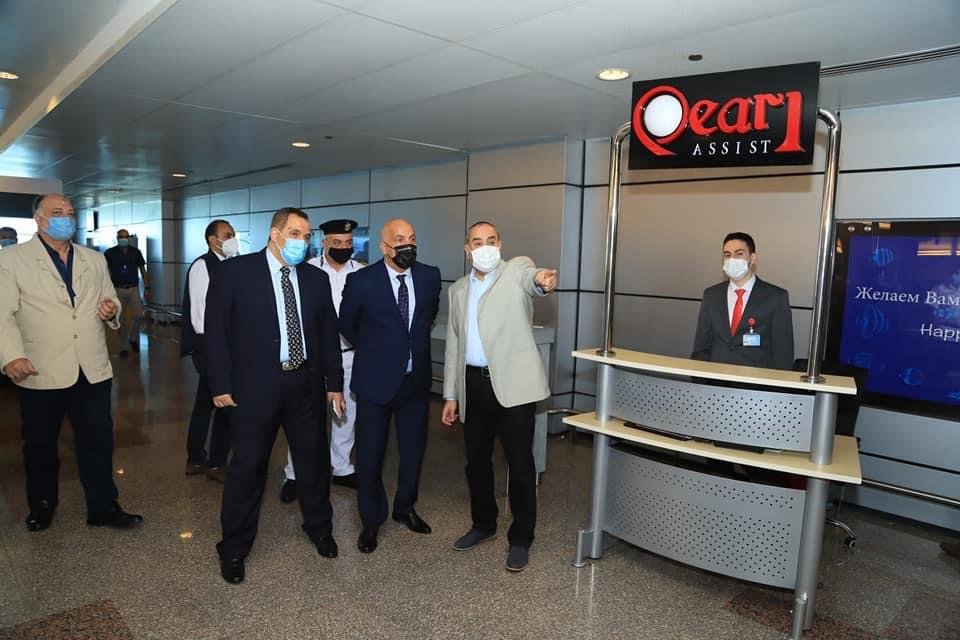 فى إطار توجيهات الرئيس عبدالفتاح السيسى رئيس الجمهورية بالاهتمام بالخدمات المقدمة وتوفير كافة التسهيلات وسبل الراحة للركاب القادمين والمسافرين عبر المطارات المصرية .