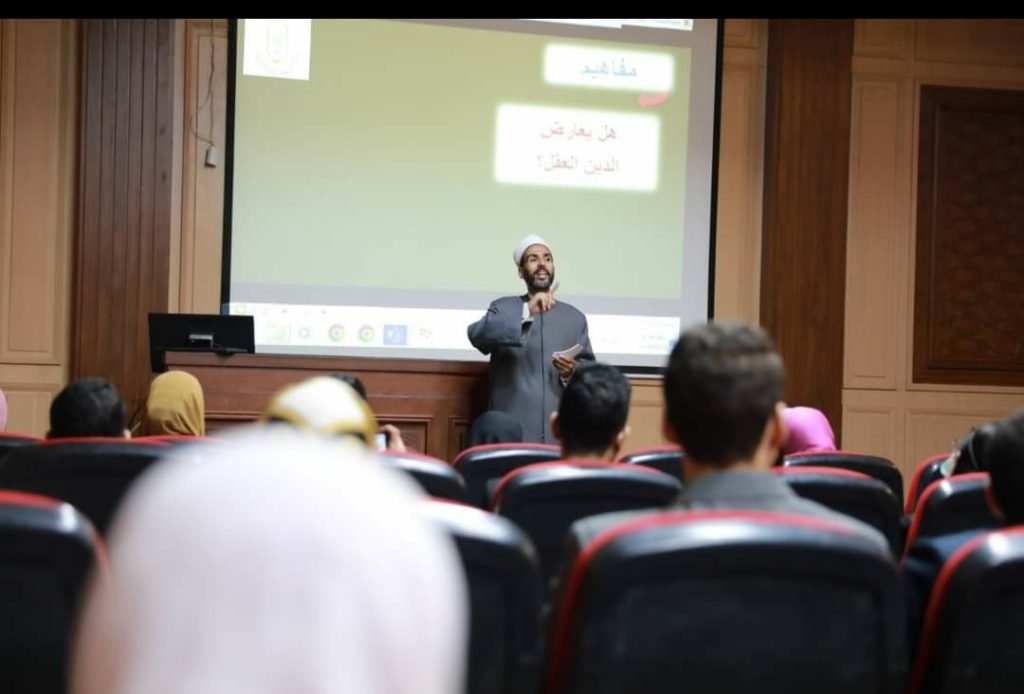 وقد حاضر خلال اليوم التدريبي الشيخ/ إبراهيم جاد الكريم، والشيخ/ محمد صلاح، والشيخ/ محمد سمير، و أ.عائشة عمرو، أعضاء الفتوى بمركز الأزهر العالمي للفتوي الإلكترونية بمشيخة الأزهر الشريف، وتحدث المحاضرون خلال اليوم التدريبي عن العديد من المفاهيم، أهمها: حديثهم إلى الشباب عن الغاية من خلق الإنسان، وكيفية تعزير اليقين والإيمان، وأهم حيل المشككين في الدين وكيفية مواجهتها بعلم وإيمان ووعي.
