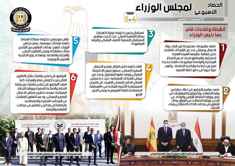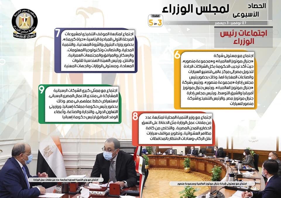 بالإنفوجراف..ننشر الحصاد الأسبوعي لأنشطة مجلس الوزراء
