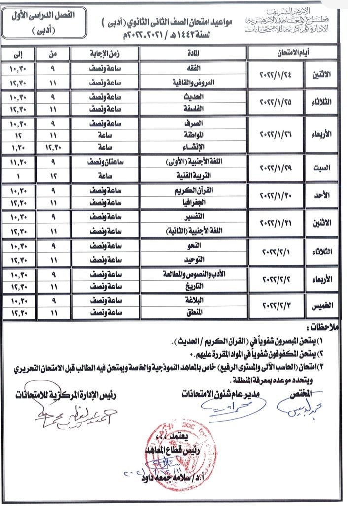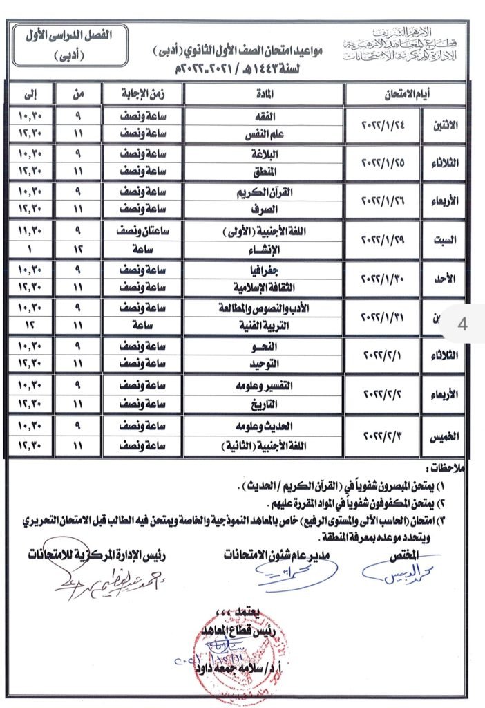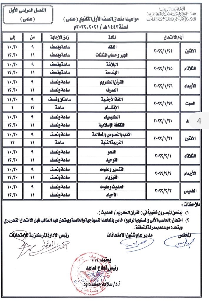 «المعاهد الأزهرية» يعلن جداول امتحانات الفصل الدراسى الأول لسنوات النقل.. (صور)