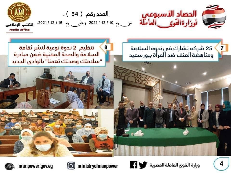 وزارة القوى العاملة تنشر الحصاد الأسبوعي لأنشطتها