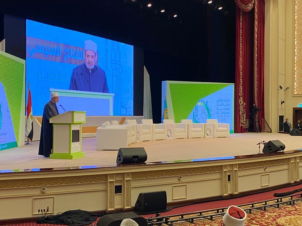 وفي نهاية كلمته، تقدم فضيلة الإمام الأكبر أ.د أحمد الطيب، شيخ الأزهر الشريف، بخالص الشكر الجزيل للسيد الرئيس عبد الفتاح السيسي، رئيس الجمهوريَّة على تكرمه بوضع مؤتمر جامعة الأزهر تحت رعايته الكريمة مما كان له أكبر الأثر في إتمام هذا المؤتمر على هذا الوجه المشرف إعدادًا ودقَّةً ونظامًا.