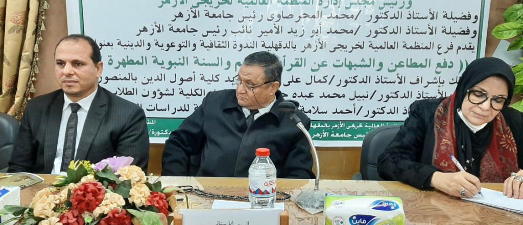 أقامت المنظمة العالمية لخريجي الأزهر فرع محافظة الدقهلية ندوة بكلية أصول الدين بالمنصوره بعنوان دفع المطاعن عن القرآن الكريم والسنة النبوية المطهرة