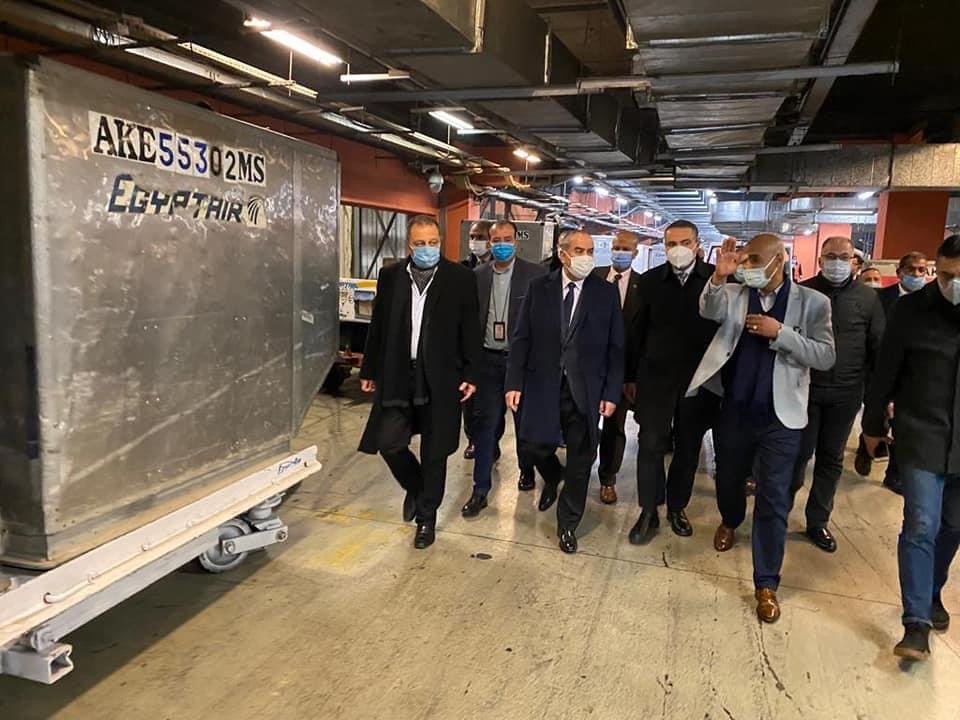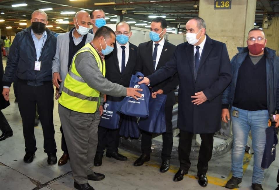 وخلال جولته التى رافقه خلالها الأستاذ باسم عبد الكريم مساعد الوزير للعلاقات الدولية والإعلام والطيار عمرو أبوالعينين رئيس الشركة القابضة لمصرللطيران والمهندس مسعد موسي العضو التنفيذي لشركة مصرللطيران للخدمات الأرضية تقدم وزير الطيران بالشكر والتهنئة لجميع العاملين بالمطار على جهودهم مشيداً بالتنسيق والتعاون المثمر بين جميع الجهات العاملة بالمطار من وزارات الداخلية والسياحة والمالية ممثلة في مصلحة الجمارك و”الصحة” ممثلة في الحجر الصحي وغيرها من الوزارات والهيئات في تيسير إجراءات السفر والوصول لضيوف مصر القادمين والمسافرين عبر المطارات المصرية .