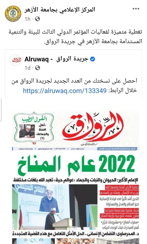 المركز الإعلامي لجامعة الأزهر يبرز تغطية”الرواق” لفعاليات مؤتمر المناخ