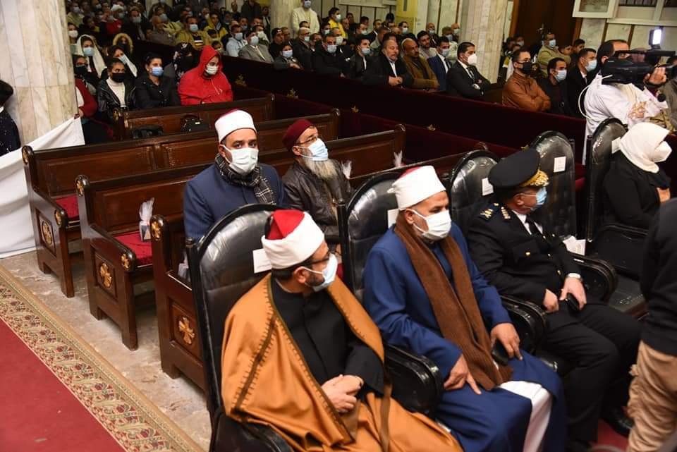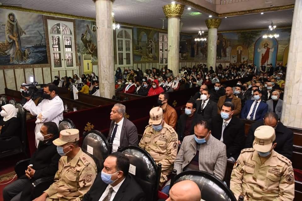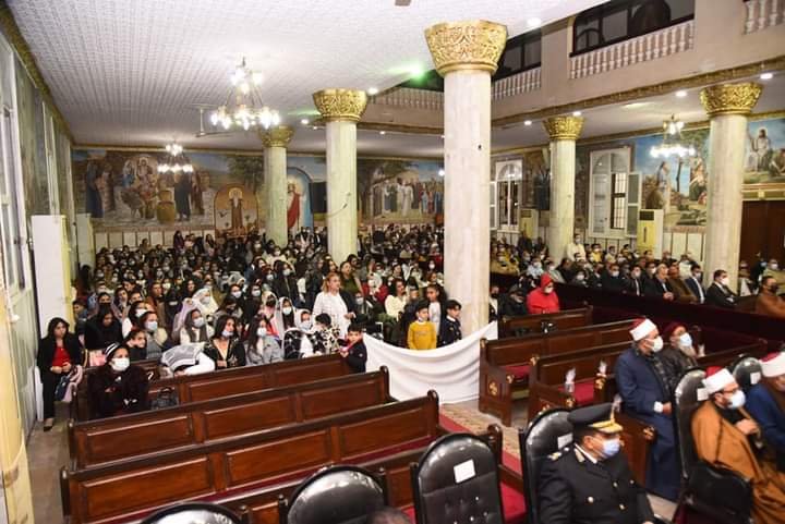 شهد وفد من المنظمة العالمية لخريجي الأزهر بمحافظة مطروح قداس عيد الميلاد المجيد بكنيسة السيدة العذراء مريم وسط مدينة مرسي مطروح وذلك بقيادة محافظ مطروح اللواء خالد شعيب ونائب المحافظ د دينا عثمان وعدد من القيادات الأمنية والتنفيذية بالمحافظة .