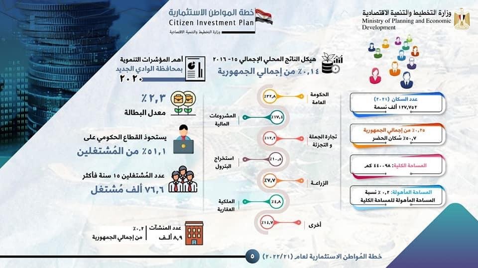 وزارة التخطيط تستعرض خطة المواطن الاستثمارية لمحافظة الوادي الجديد ل 21/2022