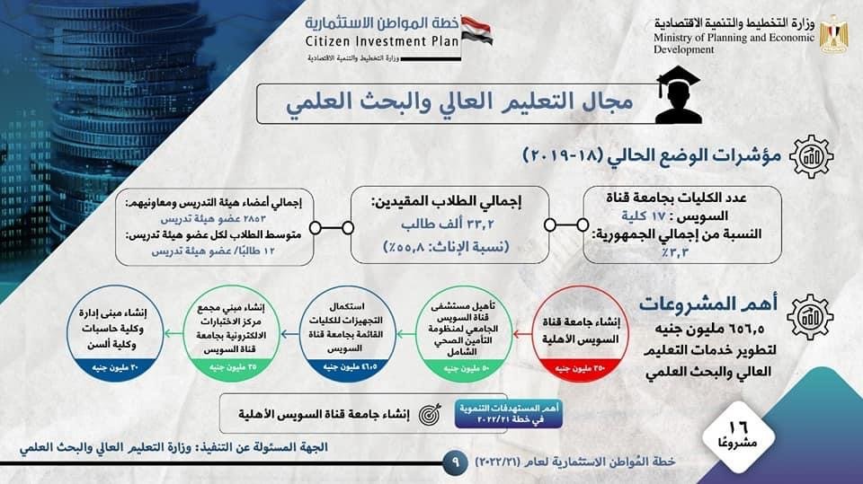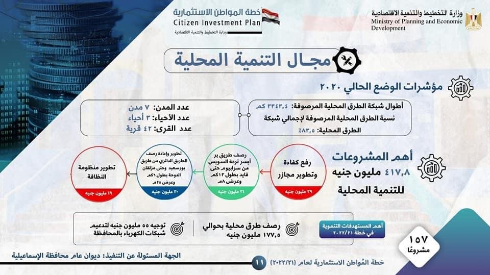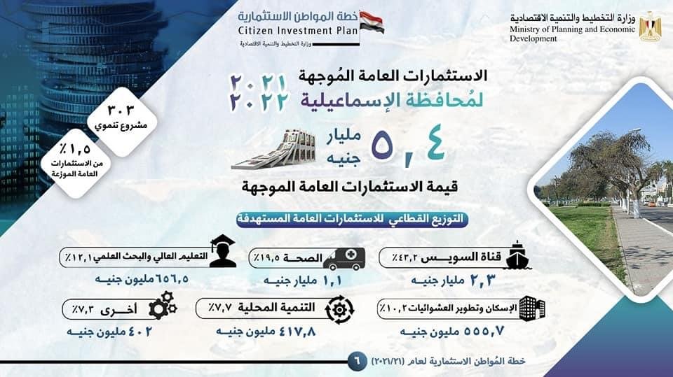 وزارة التخطيط تعلن خطة المواطن الاستثمارية لمحافظة الإسماعيلية لعام 21/2022