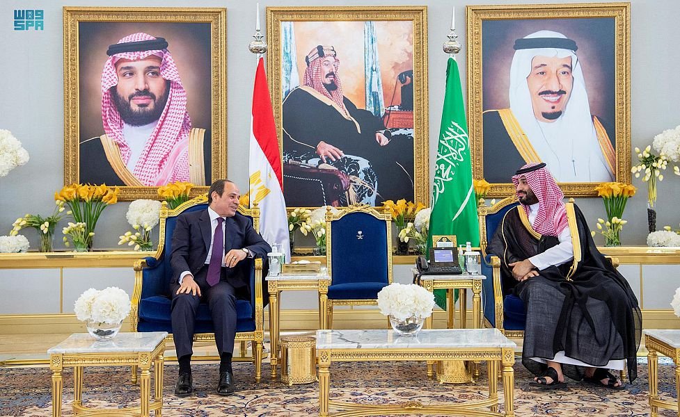 وبعد استراحة في صالة التشريفات في المطار، صحب سمو ولي العهد، رئيس مصر، في موكب رسمي إلى الديوان الملكي.