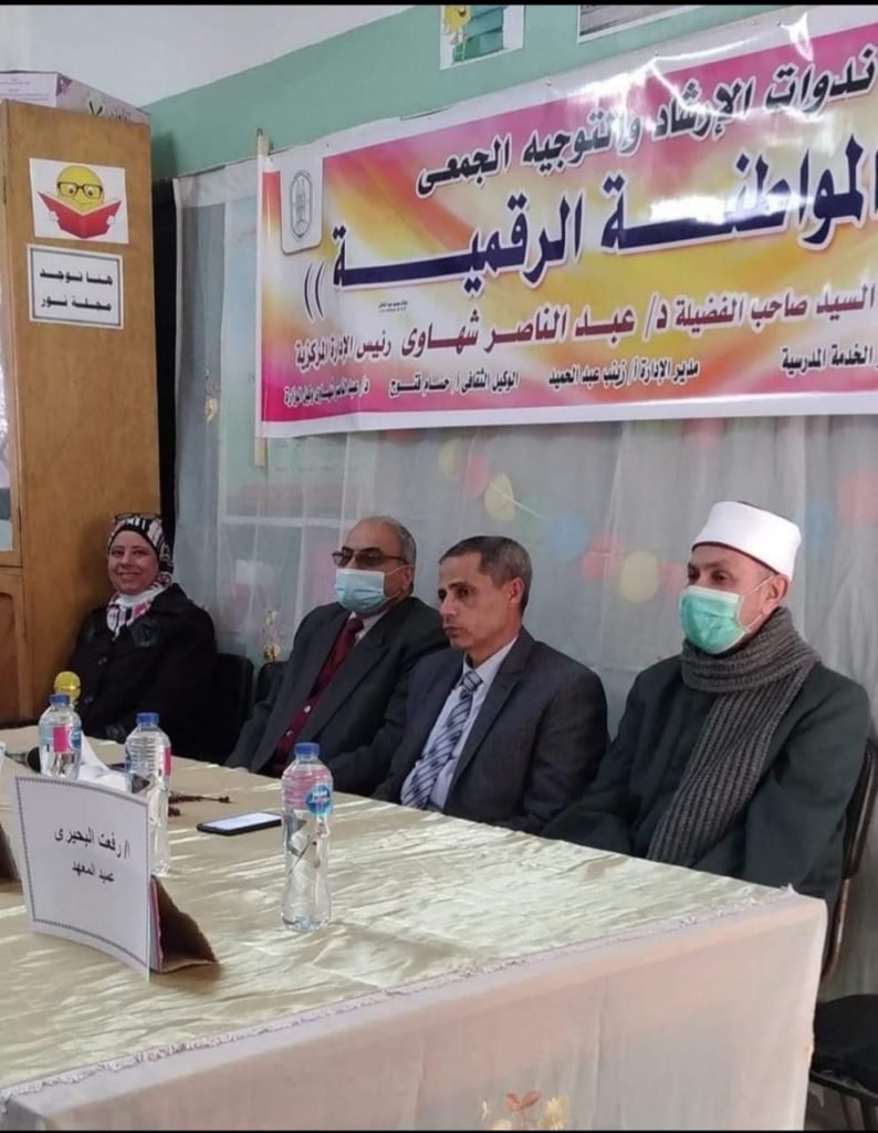 نظم معهد فتيات كفر الشيخ الثانوي؛ ندوة تثقيفية تحت عنوان “المواطنة الرقمية”، ضمن سلسلة ندوات الإرشاد والتوجيه الجمعي الذي يعدها مكتب الخدمة الاجتماعية المدرسية بإدارة رعاية الطلاب بمنطقة كفرالشيخ الأزهرية، وذلك اليوم الخميس 17 مارس 2022م، بمقر المعهد، برعاية د.عبد الناصر شهاوي، رئيس الإدارة المركزية لمنطقة كفر الشيخ الأزهرية، وإشراف أ.حسام فتوح حماد، الوكيل الثقافي للمنطقة، ولفيف من المعلمين ومشايخ المنطقة.