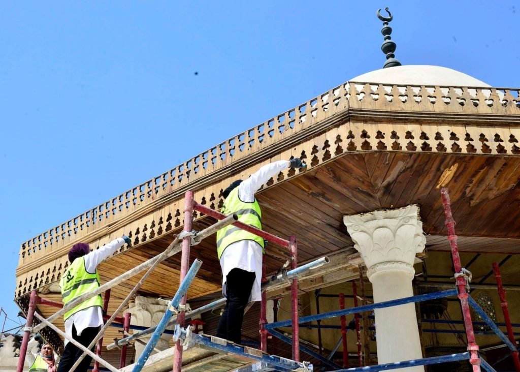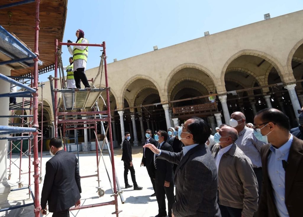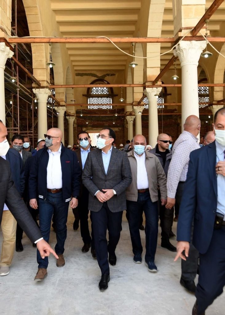 وخلال تفقده لمواقع العمل بمسجد عمرو بن العاص، تابع رئيس الوزراء ومرافقوه أعمال ترميم الأعمدة والأسقف الخشبية في الجزء القديم من المسجد، والتي يتم تنفيذها مع قطاعي الأوقاف والآثار، كما باشر أعمال ترميم السبيل الواقع في منتصف المسجد، لإعادته إلى رونقه وحالته الأصلية، وأجرى حواراً مع مجموعة المرممات من شركة “المقاولون العرب”، أكد خلاله أهمية ما يقومون به لإعادة هذه الموقع إلى رونقه.