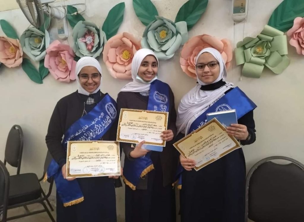 3- منه أيمن عبد المحسن، معهد فتيات السلام العادي الإعدادي الثانوي، كما تتقدم منطقة القاهرة الأزهرية بالشكر إلى إدارة معهدي الطالبات.