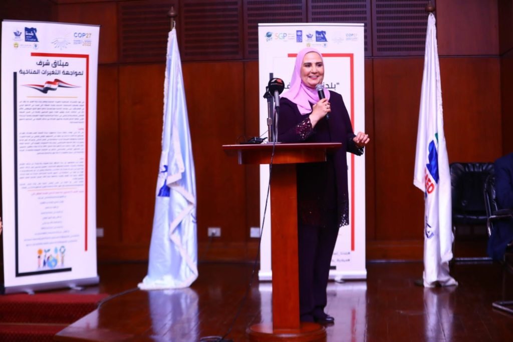 وأكدت أن وزارة التضامن الاجتماعي تولي اهتماما كبيرا بجودة حياة المجتمعات المحلية في كل مكان مع إيلاء أهمية خاصة للمناطق الريفية، والمناطق المطورة المنقول اليها سكان المناطق العشوائية، كما تقدر الوزارة تقديراً كبيراً دور المجتمع المدني في الحفاظ على البيئة والموارد الطبيعية حيث تحرص تمام الحرص على دعم الجمعيات الأهلية العاملة في مجال حماية البيئة والتنمية المستدامة، وتقوم بتقديم الدعم المادي والفني للجمعيات العاملة في هذا المجال وأيضا اسناد مشروعات بيئية لخدمة المجتمع المحلي، كما تقوم الوزارة بتنفيذ برنامج وعي للتنمية المجتمعية والذي تحرص الوزارة من خلاله على دمج كافة الرسائل الخاصة بالوعي البيئي وزيادة الوعي بأهمية المحافظة على الموارد البيئية المتاحة خاصة الموارد المائية والعمل على دعم مفهوم اعادة التدوير وترشيد الاستهلاك وتقليل الفقد بجميع المشروعات التي تقوم على تنفيذها الوزارة بالتعاون مع الجمعيات الأهلية هذا بالإضافة إلى تشجيع جهود المجتمع الأهلي في تنفيذ هذه البرامج بشكل مستقل، وفى هذا الإطار، تتضافر جهود الدولة ووزاراتها المعنية من أجل تكامل الجهود الرامية إلى تخفيف آثار تغير المناخ، مما يصب في صالح المواطن المصري ونمو الاقتصاد بشكل مستدام، وتحقيق التنمية المجتمعية المستدامة مع الأخذ في عين الاعتبار ضرورة حماية ورعاية الأسر المصرية الفقيرة.
