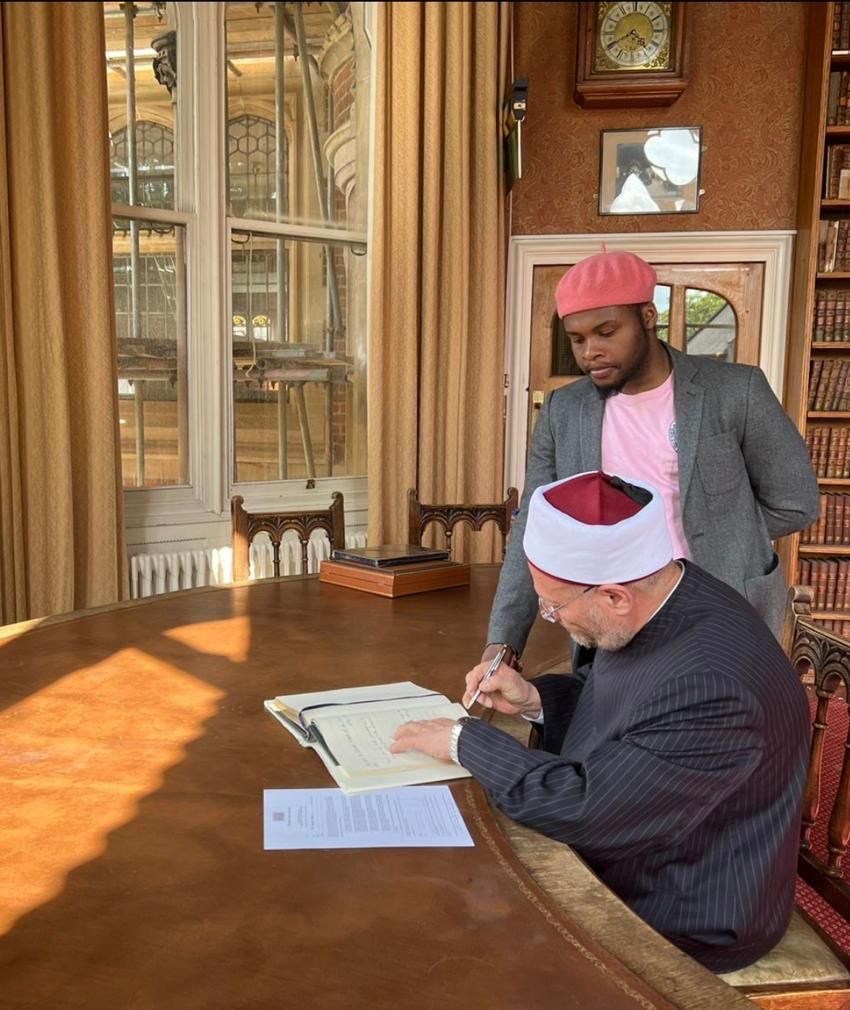 وأشار إلى أن مركز سلام سيعقد مؤتمرًا عالميًّا يجتمع فيه عدد من الوزراء والباحثين المهتمين بمواجهة التطرف بالإضافة إلى المفتين ورجال الفكر والإعلام ورؤساء المراكز البحثية والعديد من الأكاديميين.وعقب انتهاء محاضرة فضيلة المفتي بجامعة أكسفورد قام فضيلته بجولة داخل إحدى مكتبات الجامعة العريقة، كما تفقَّد معرضًا ضمَّ صورًا لكبار الشخصيات التي تخرَّجت في جامعة أكسفورد، وكذلك الشخصيات العالمية التي زارتها، ومن بينها شخصيات عربية مهمة، وأثنى فضيلته على احتفاظ المكتبة بعراقتها التاريخية.