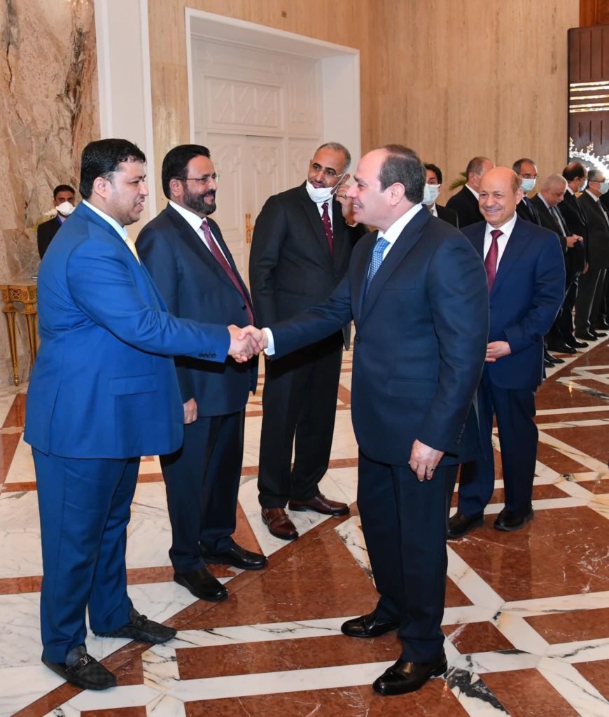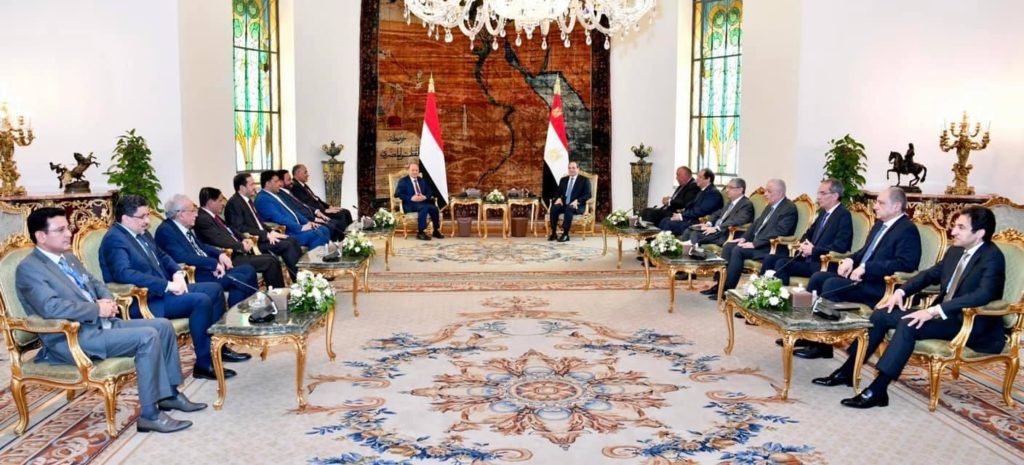 وصرح السفير بسام راضي المتحدث الرسمي باسم رئاسة الجمهورية بأن الرئيس رحب بأخيه رئيس مجلس القيادة الرئاسي اليمني ضيفاً عزيزاً على مصر، مهنئاً إياه بتوليه مهام منصبه، ومتمنياً له التوفيق في مواجهة التحديات التي تواجه اليمن، والمضي قدماً في العملية السياسية بنوايا مخلصة هدفها مصلحة اليمن في المقام الاول، وصولاً إلى حل مستدام ينهى معاناة الشعب اليمني الشقيق ويلبي طموحاته.