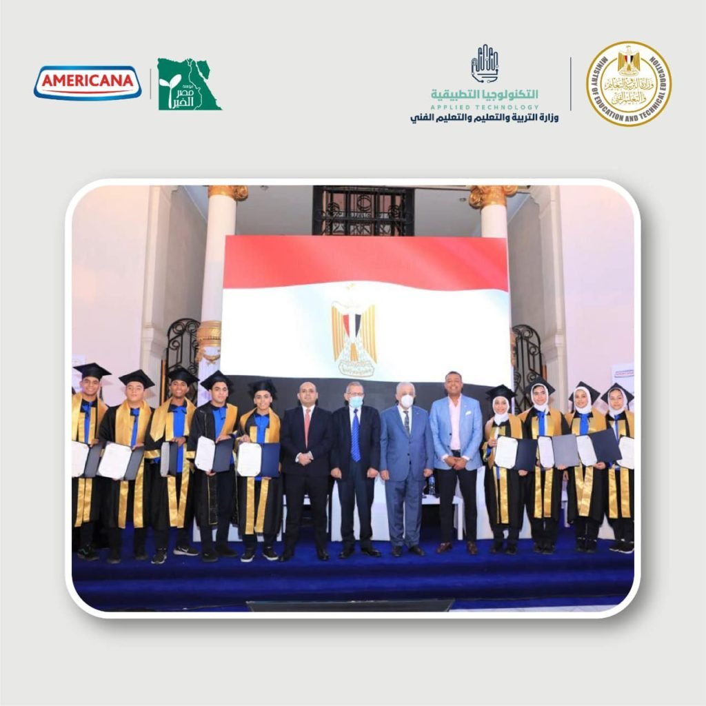 احتفلت وزارة التربية والتعليم والتعليم الفني، بالتعاون مع مؤسسة “مصر الخير”، اليوم، بتخريج الدفعة الأولى من مدرسة الشهيد النقيب أحمد حامد تعلب الفندقية للتكنولوجيا التطبيقية التي تعمل بالتعاون مع شركة أمريكانا وشريك التعليم الدولي City & Guilds، وقد حضر الاحتفالية د.طارق شوقي، وزير التربية والتعليم والتعليم الفني، و د.محمد مجاهد، نائب وزير التربية والتعليم لشئون التعليم الفني، و د.عمرو بصيلة، رئيس الإدارة المركزية لتطوير التعليم الفني ومدير وحدة تشغيل وإدارة مدارس التكنولوجيا التطبيقية، و أ.محمد عبد الرحمن، المدير التنفيذي للمؤسسة.