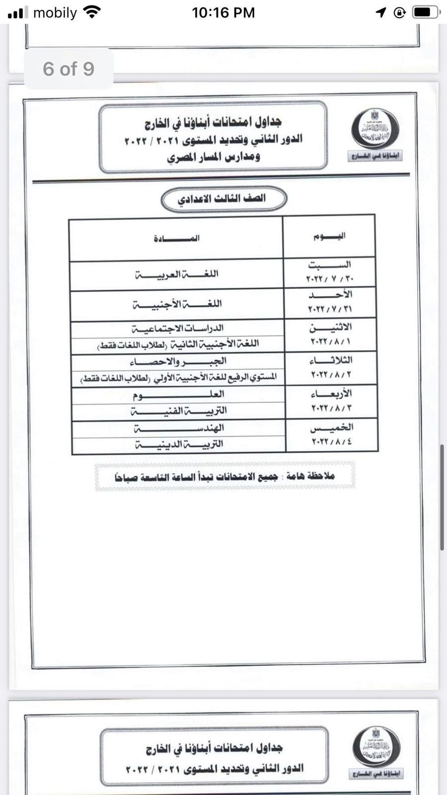 وأوضحت الوزارة أنه حال وجود أي عائق يحول دون أداء الامتحان من خلال المنصة يحق للطالب طباعة ورقة الأسئلة وورقة الإجابة (بابل شيت) الموجودين على الموقع والإجابة عليها وإرسالها من خلال البريد السريع على مقر لجنة النظام والمراقبة لامتحانات أبنائنا في الخارج (المدرسة الفنية المتقدمة ش القصر العيني أمام كلية الصيدلة ـ القاهرة.