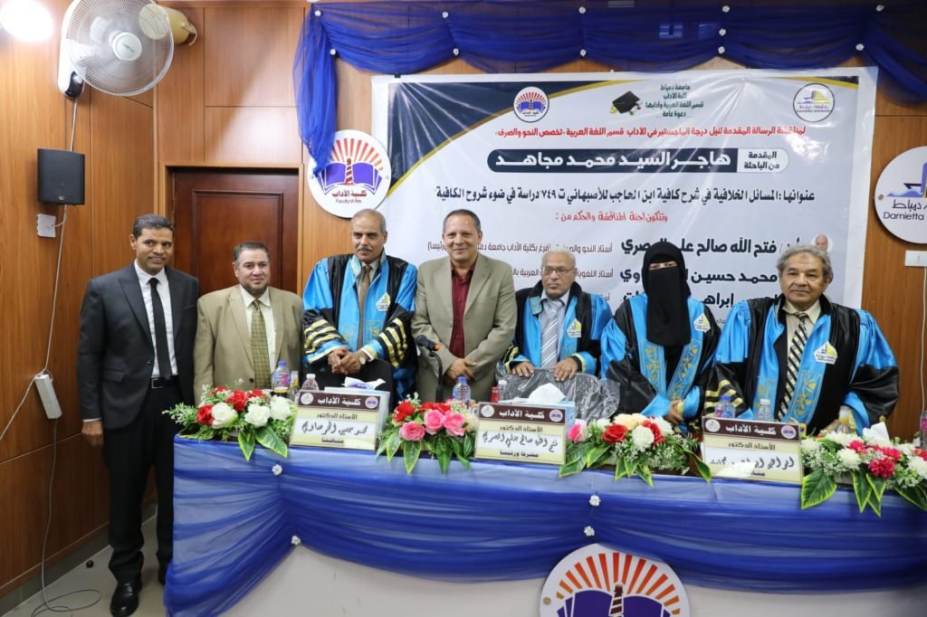 وعقدت المناقشة في قاعة المناقشات بالمبنى الإداري بكلية الآداب، دمياط الجديدة.
