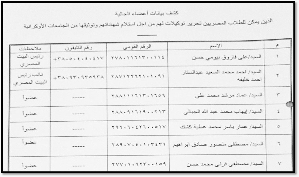 ويمكن لهؤلاء الطلاب التواصل مباشرة مع السادة ممثلي الجالية المصرية الواردة أسماؤهم من السفارة المصرية بأوكرانيا.