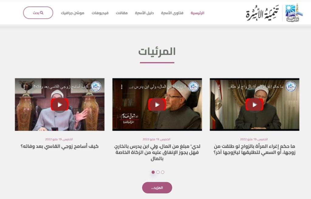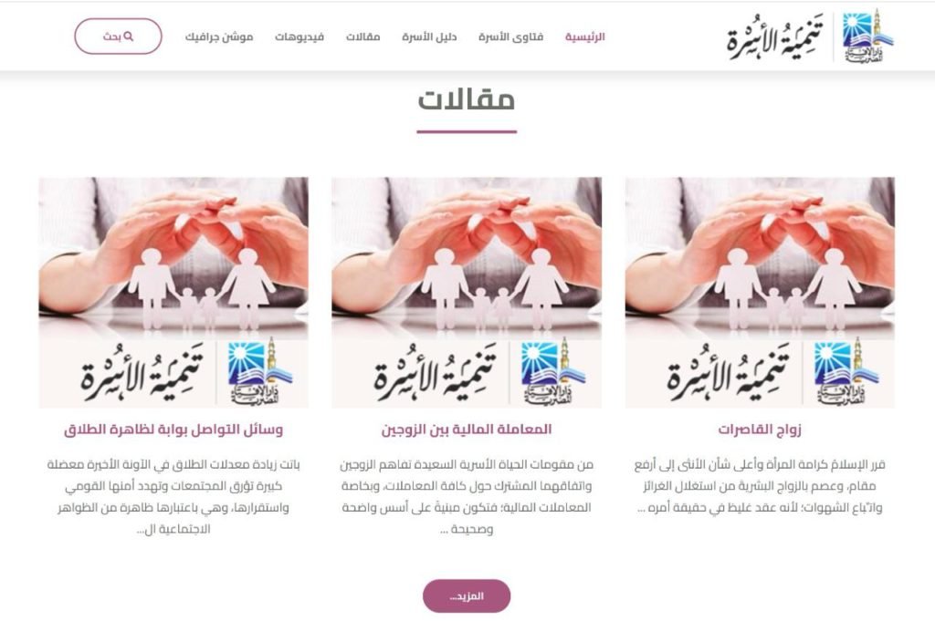 كما تتميَّز الصفحة بإعداد قسم مستقل بالرعاية والتربية، يضم فتاوى دار الإفتاء المصرية التي تتعلَّق بتعامل بأفراد الأسرة الواحدة مع بعضهم البعض ومعرفة الحقوق والواجبات.