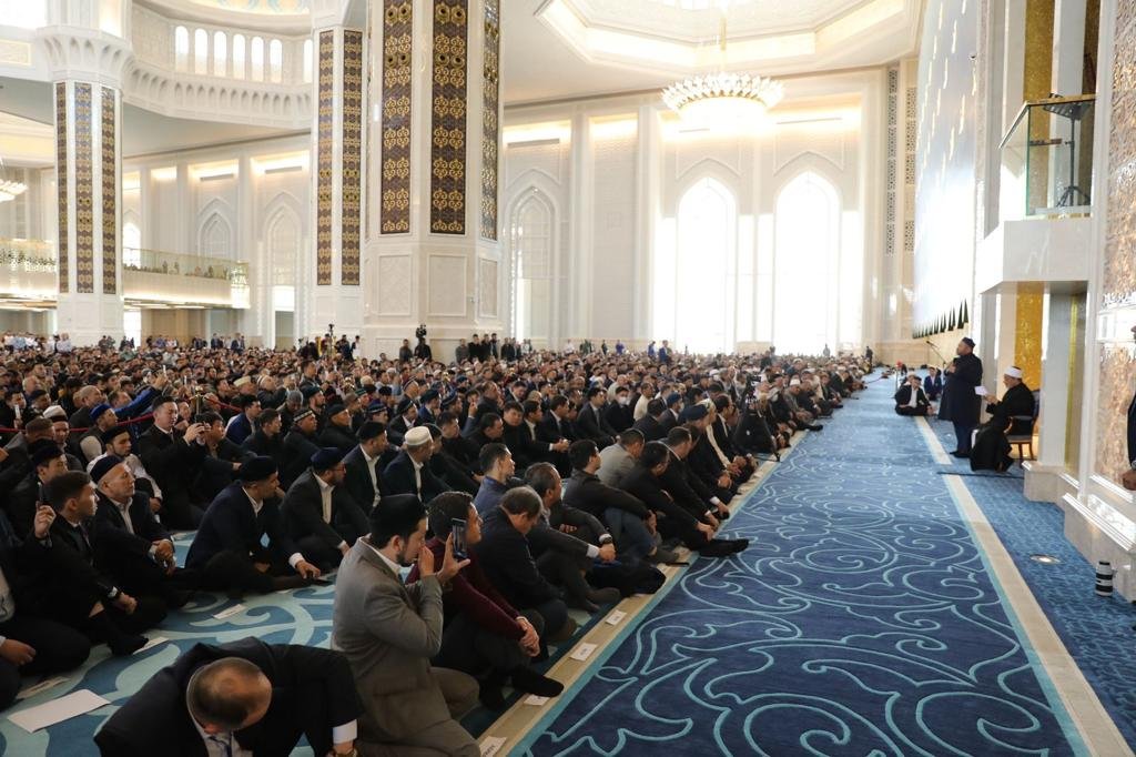 وألقى”الإمام الطيب”، كلمة أمام آلاف المصلين، عبر خلالها عن سعادته بزيارة كازاخستان، وتقديره لما لمسه من رئيسها وشعبها، من حفاوة استقبال وكرم ضيافة، معربا عن اعتزازه بالحديث مع الشباب أبناء الشعب الكازاخي، وشرفه بالتتلمذ على تراث علماء المسلمين الأوائل في كازاخستان، والذين سطعوا في سماء العالم الإسلامي منذ فجر الإسلام واستمر قرونا طويلة في تاريخه المجيد، وفي مقدمتهم الفيلسوف الكبير، أبو نصر الفارابي، والقائد العظيم، الظاهر بيبرس، الذي عرفه المسلمون في مشارق الأرض ومغاربها قائدا مغوارا، رد عن الإسلام والمسلمين وعن الحرمين الشريفين كيد الأعداء والمتربصين.