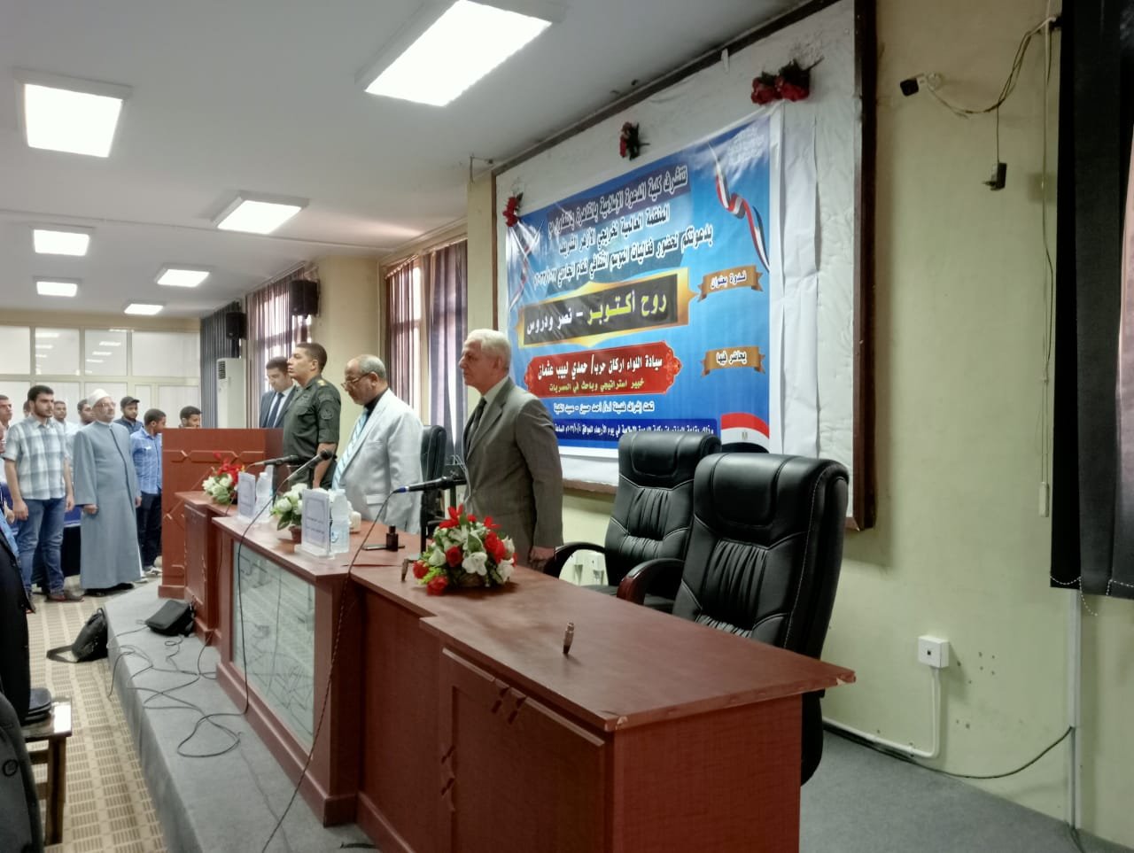 نظمت كلية الدعوة الإسلامية جامعة الأزهر بالقاهرة، برئاسة الدكتور أحمد حسين عميد الكلية، وبالتعاون مع المنظمة العالمية لخريجي الأزهر، الاحتفالية الأولى في إطار موسمها الثقافي تحت عنوان “روح أكتوبر – نصر ودروس” حاضر خلالها اللواء أركان حرب حمدي لبيب عثمان الخبير الإستراتيجي والباحث في المصريات، بحضور الدكتور صابر طه وكيل الكلية لشئون التعليم والطلاب، والمقدم محمد وهدان إدارة التربية العسكرية.