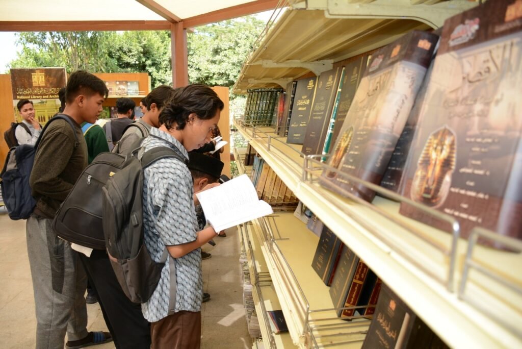 يواصل معرض دار الكتب والوثائق القومية، بالمنظمة العالمية لخريجي الأزهر فعالياته فى دورته الأولى، حيث توافد، اليوم، الزوار من طلاب جامعة الأزهر والوافدين من مختلف الجنسيات على المعرض.