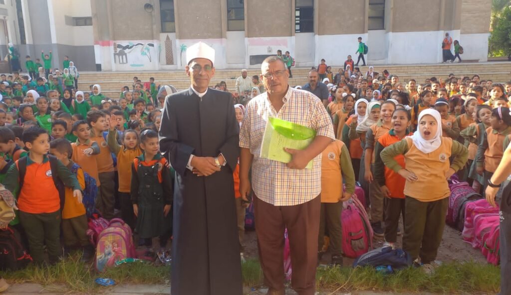 وحرص الوكيل الشرعي لمنطقة القاهرة الأزهرية، على حضور طابور الصباح، لمتابعة التلاميذ، والطلاب.