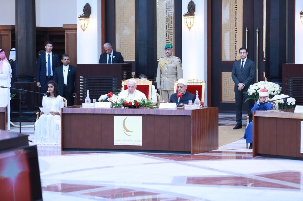 ويعقد اجتماع حكماء المسلمين تحت عنوان «الحوار بين الأديان وتحدِّيات القرن الواحد والعشرين»، بمسجد قصر الصخير الملكي بالعاصمة البحرينية المنامة، برئاسة فضيلة الإمام الأكبر أ. د أحمد الطيب شيخ الأزهر الشريف، رئيس مجلس حكماء المسلمين، وقداسة البابا فرنسيس، بابا الكنيسة الكاثوليكية، عقب ختام فعاليات ملتقى البحرين للحوار بعنوان “الشرق والغرب من أجل التعايش الإنساني” الذي عقد على مدار يومي الخميس والجمعة 3 و 4 نوفمبر، بحضور جلالة الملك حمد بن عيسى آل خليفة، ملك مملكة البحرين، ومشاركة رموز الأديان والمفكرين والمثقفين من مختلف دول العالم.