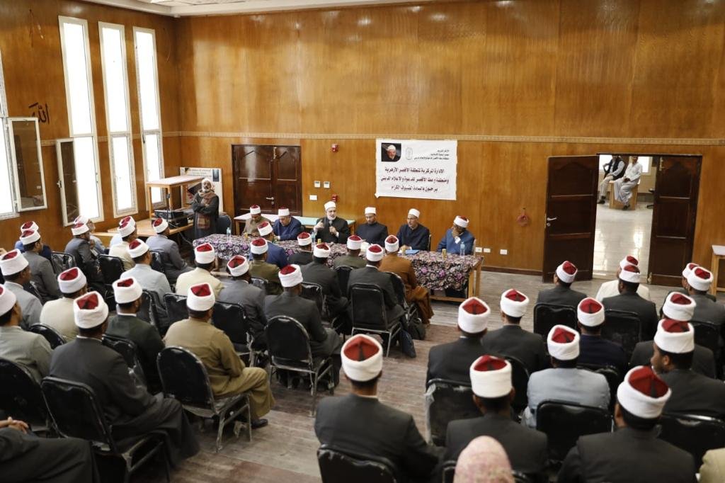 وعقد وكيل الأزهر لقاءً موسعًا بوعاظ وواعظات الأقصر، لمناقشة التحديات التى تواجههم وما يمكن أن يقدمه الوعاظ خلال الفترة المقبلة، وذلك فى إطار توجيهات فضيلة الإمام الأكبر الدكتور أحمد الطيب شيخ الأزهر الشريف، بضرورة الاهتمام بدور الوعاظ ودعمهم لأداء دورهم على أكمل وجه، مشيرًا إلى أن فضيلة الإمام الأكبر أعاد هيبة العمامة الأزهرية ويشجع الوعاظ على أداء أمانة العلم والدعوة إلى الله، لافتًا إلى أن ثقة الناس بالأزهر وعلمائه تفرض علينا مسؤولية إضافية تستوجب التواصل مع الناس بشكل مكثف وتحصينهم من مخاطر الفكر المتطرف، موجهًا التحية للواعظات على جهودهن وإنفاذهن إلى أماكن مترامية للوصول إلى المرأة في مراكز وقرى صعيد مصر.