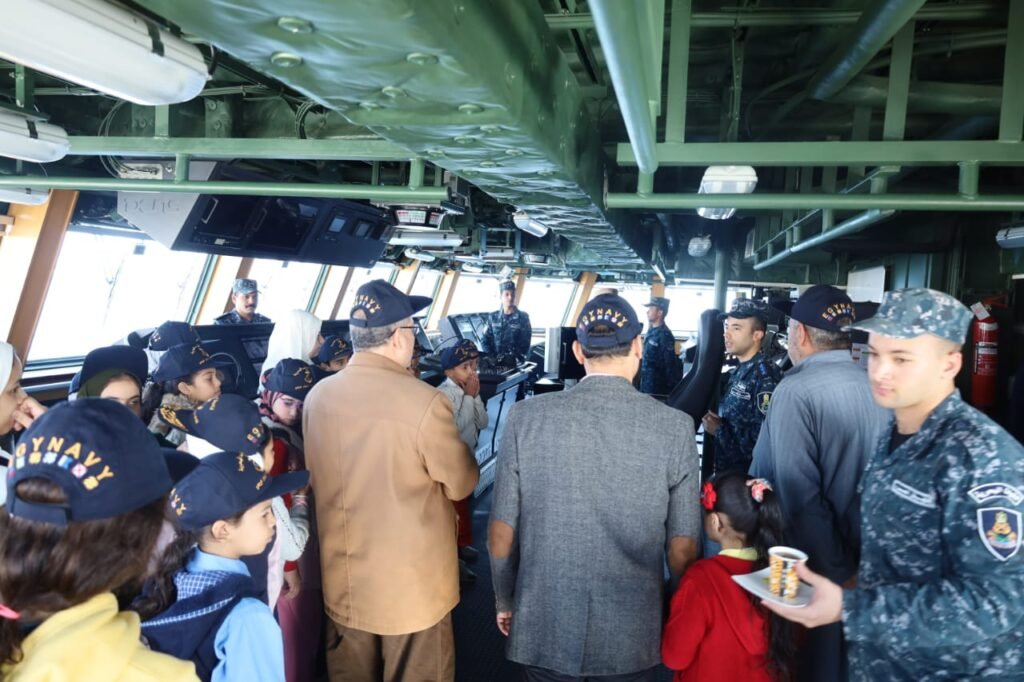 ثم توجه الطلاب في جولة ميدانية داخل الميناء و صعود أحد السفن الحربية المصنعة محليا ، والتعرف علي مراحل تكوينها وخلال الجولة تم الرد علي جميع الإستفسارات والتساؤلات الخاصة بالطلاب ، والذين أبدوا إعجابهم بما شاهدوه من إنجازات لقواتنا البحرية ، وذلك في جو من الفخر والاعتزاز بوطنهم ،