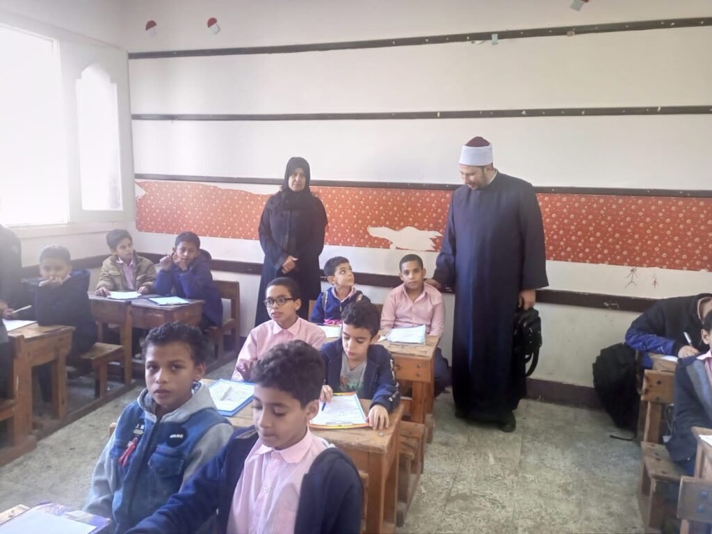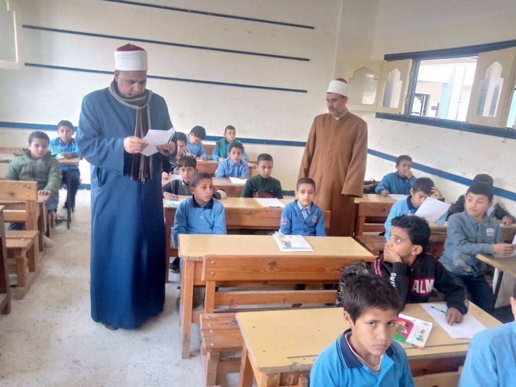 تفقد رئيس الإدارة المركزية لمنطقة مطروح الأزهرية فضيلة الشيخ عبد العظيم سالم معهد الحمام الإبتدائي التابع لإدارة الحمام التعليمية لمتابعة انتظام العمل والاطمئنان علي الإجراءات الوقائية ومناسبة الوزن النسبي للورقة الامتحانية مع محتوي المنهج ، ومناسبتها لنواتج التعلم المستهدفة.