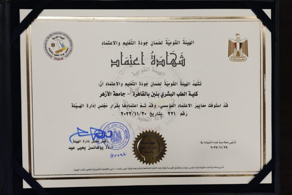 مجلس كلية طب بنين الأزهر بالقاهرة يحتفي بحصول الكلية على شهادة تجديد الاعتماد