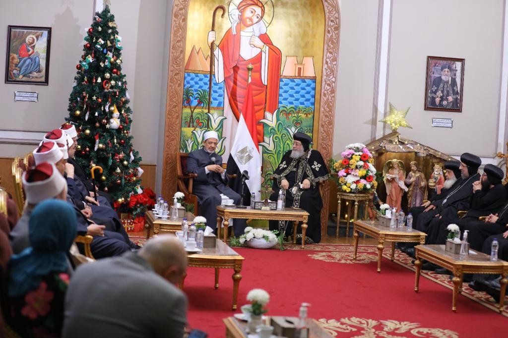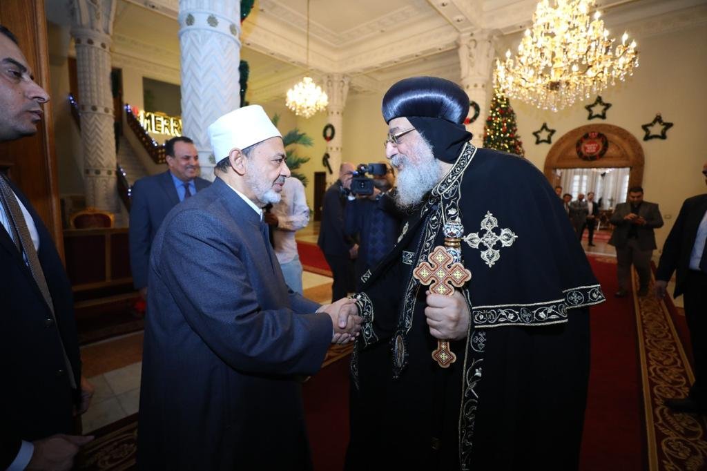 زارَ فضيلة الإمام الأكبر أ.د أحمد الطيب، شيخ الأزهر الشريف، اليوم الأربعاء، يرافقه وفدٌ من كبار علماء الأزهر، قداسةَ البابا تواضروس، بابا الإسكندرية وبطريرك الكنيسة القبطية الأرثوذكسية، وقادةَ ورجالَ الكنيسة القبطية، بمقر الكنيسة القبطية الأرثوذوكسية، للتهنئة بأعياد الميلاد والعام الميلادي الجديد.