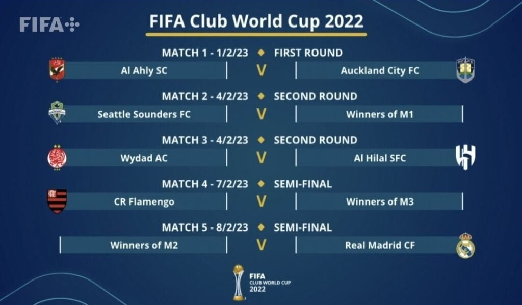 أسفرت قرعة كأس العالم للأندية 2023 التى تستضيفها المغرب فى الفترة من 1 حتى 11 فبراير 2023 المقبل عن مواجهة فريق سياتل الأمريكي للفائز من مباراة الأهلى مع أوكلاند سيتي النيوزيلاندي.