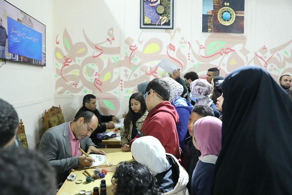 وكعادته كل عام، اصطف العشرات من جمهور المعرض أمام ركن الخط العربي لكتابة أسمائهم بالخطوط العربية المختلفة ثل الخط الديواني والفارسي والثلث والنسخ والرقعة، فقد رسم الركن في العام الماضي الابتسامة على وجوه 10 آلاف زائر كتبوا أسمائهم وتعرفوا أكثر على فنون الخط العربي، مع تعليم المتميزين منهم وتدريبهم عمليًّا داخل الركن بجناح الأزهر، وشاركوا بعد ذلك في ملتقى الخط العربي الذي أقيم في فبراير من العام الماضي.