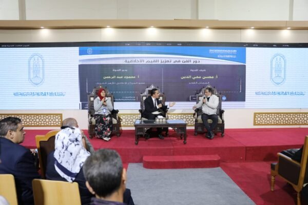 نظم جناح الأزهر الشريف بمعرض القاهرة الدولي للكتاب في نسخته (54) ، اليوم السبت ، ندوة تثقيفية بعنوان ، ” دور الفن في تعزيز القيم الأخلاقية”، شارك فيها ، الفنان ، أ/ محسن محي الدين، وأدارها، أ/ محمود عبد الرحمن، عضو المركز الإعلامي للأزهر الشريف .
